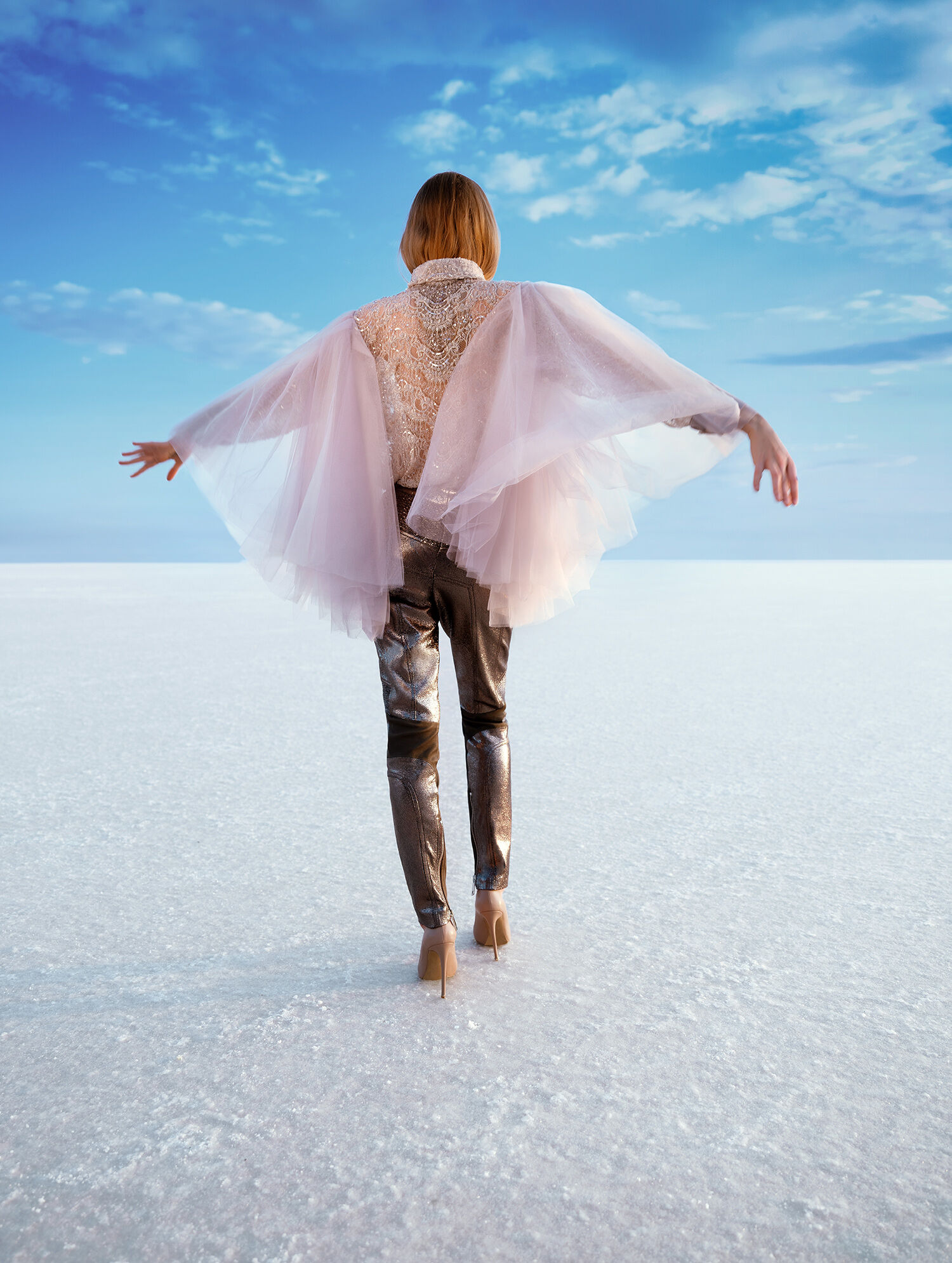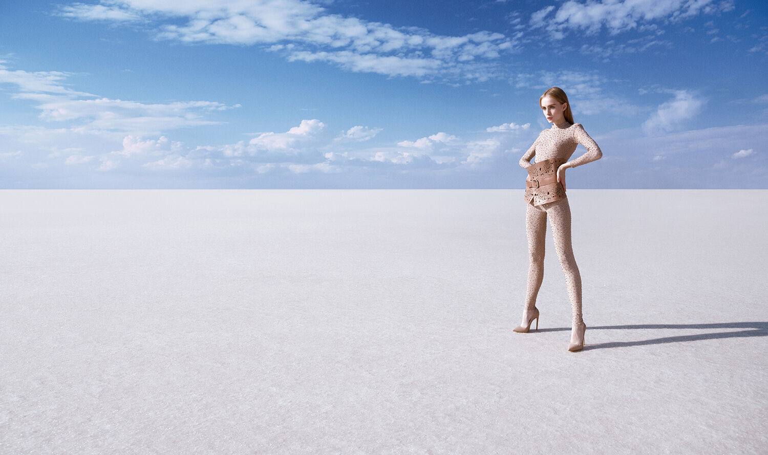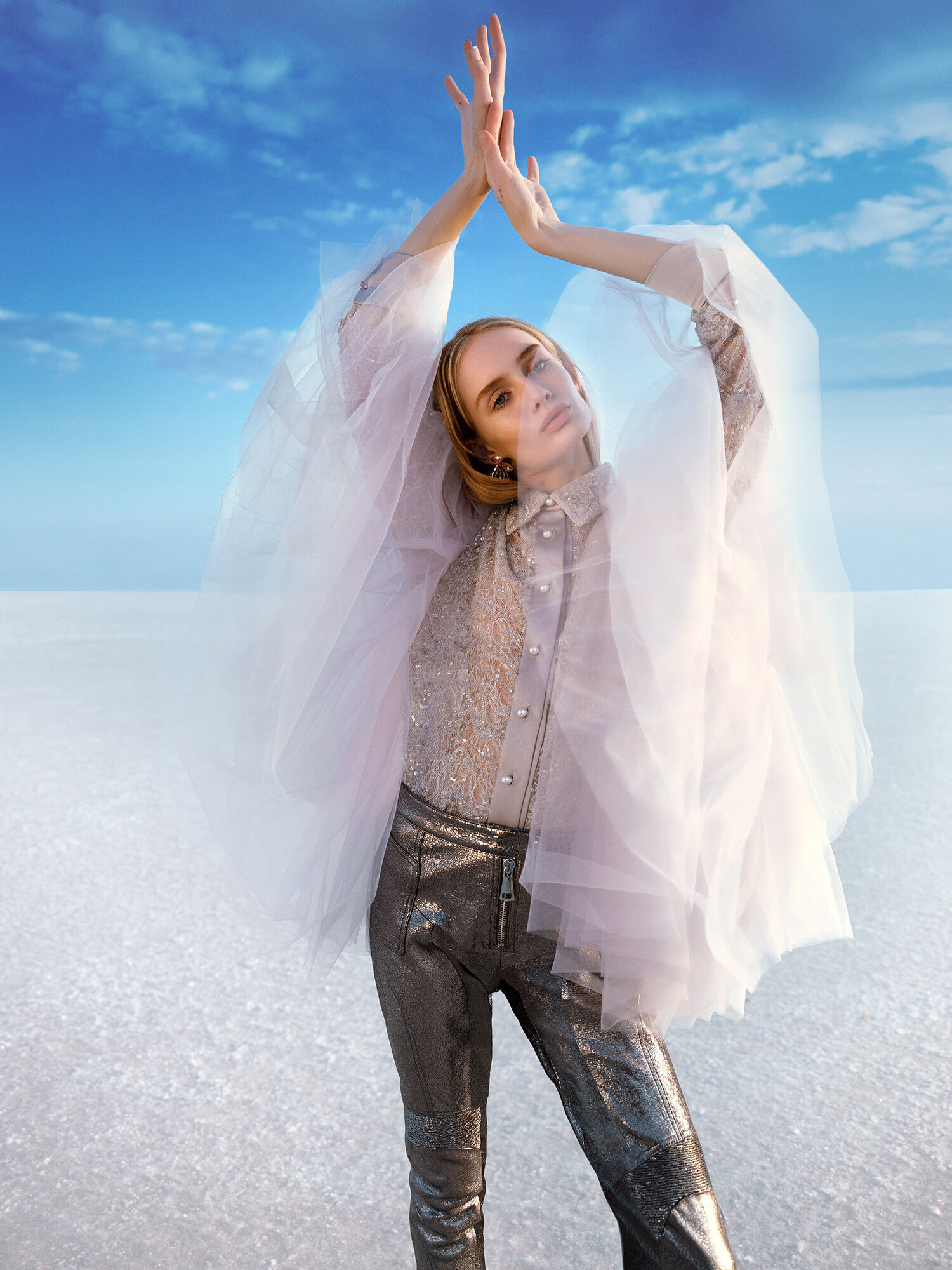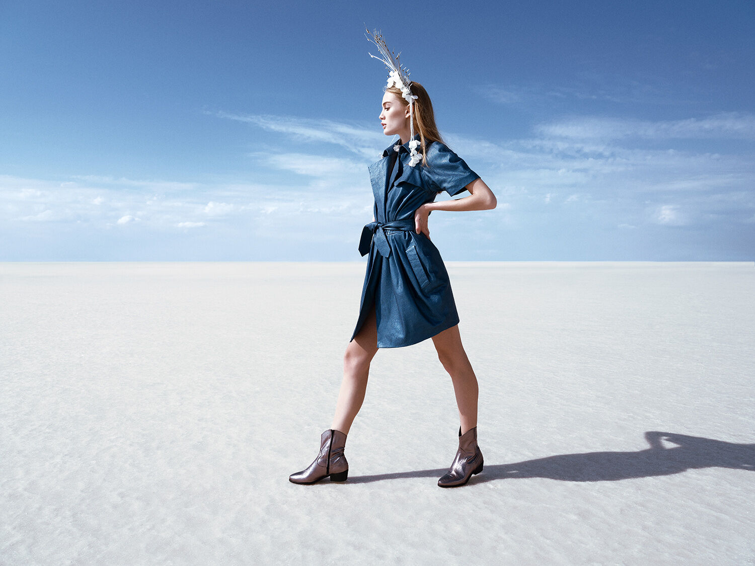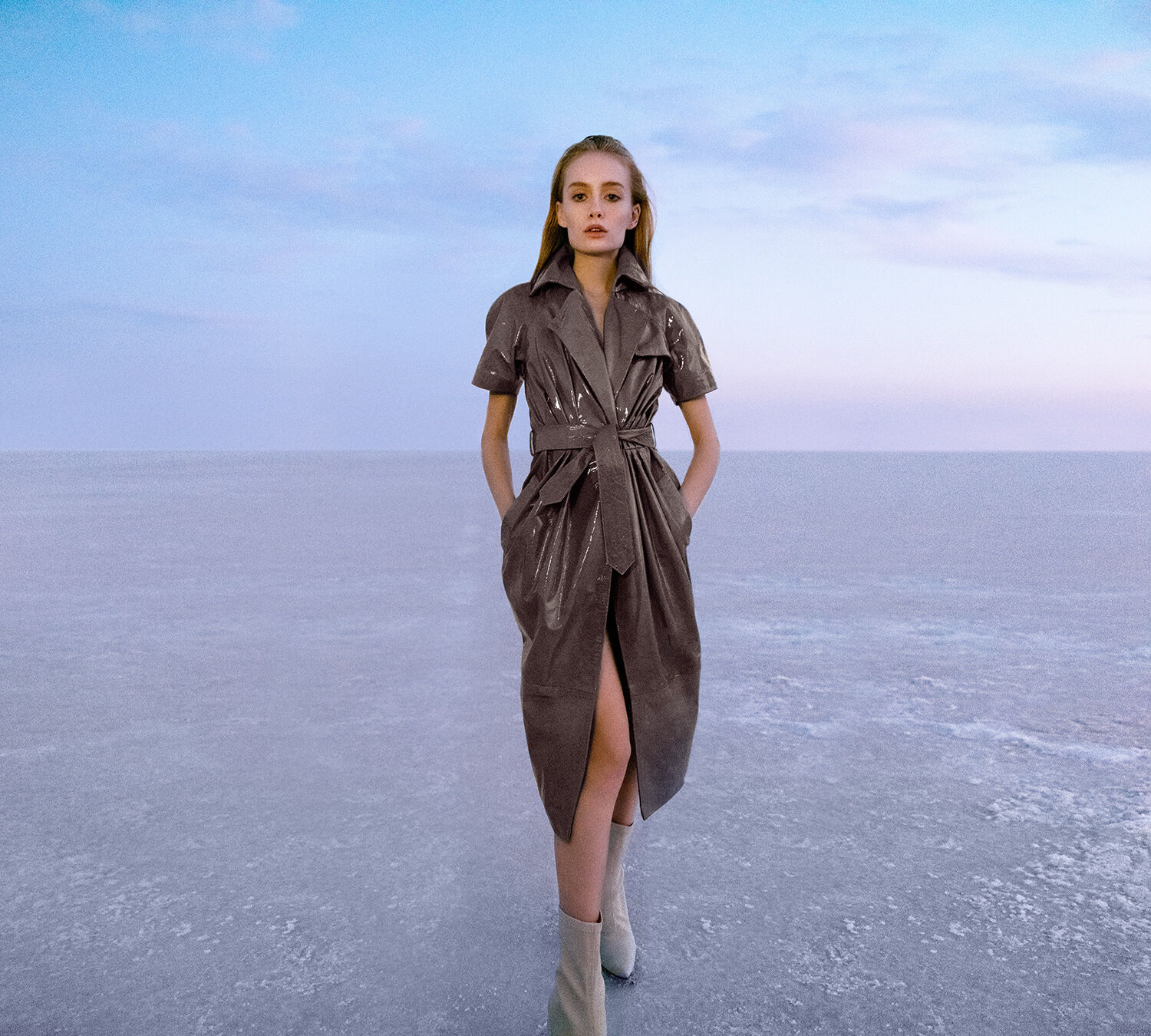 We chose a remote salt lake in the middle of nowhere in Turkey as the backdrop. The vast landscape and almost unreal light created a powerful contrast to the collection and turned the location into a natural stage.