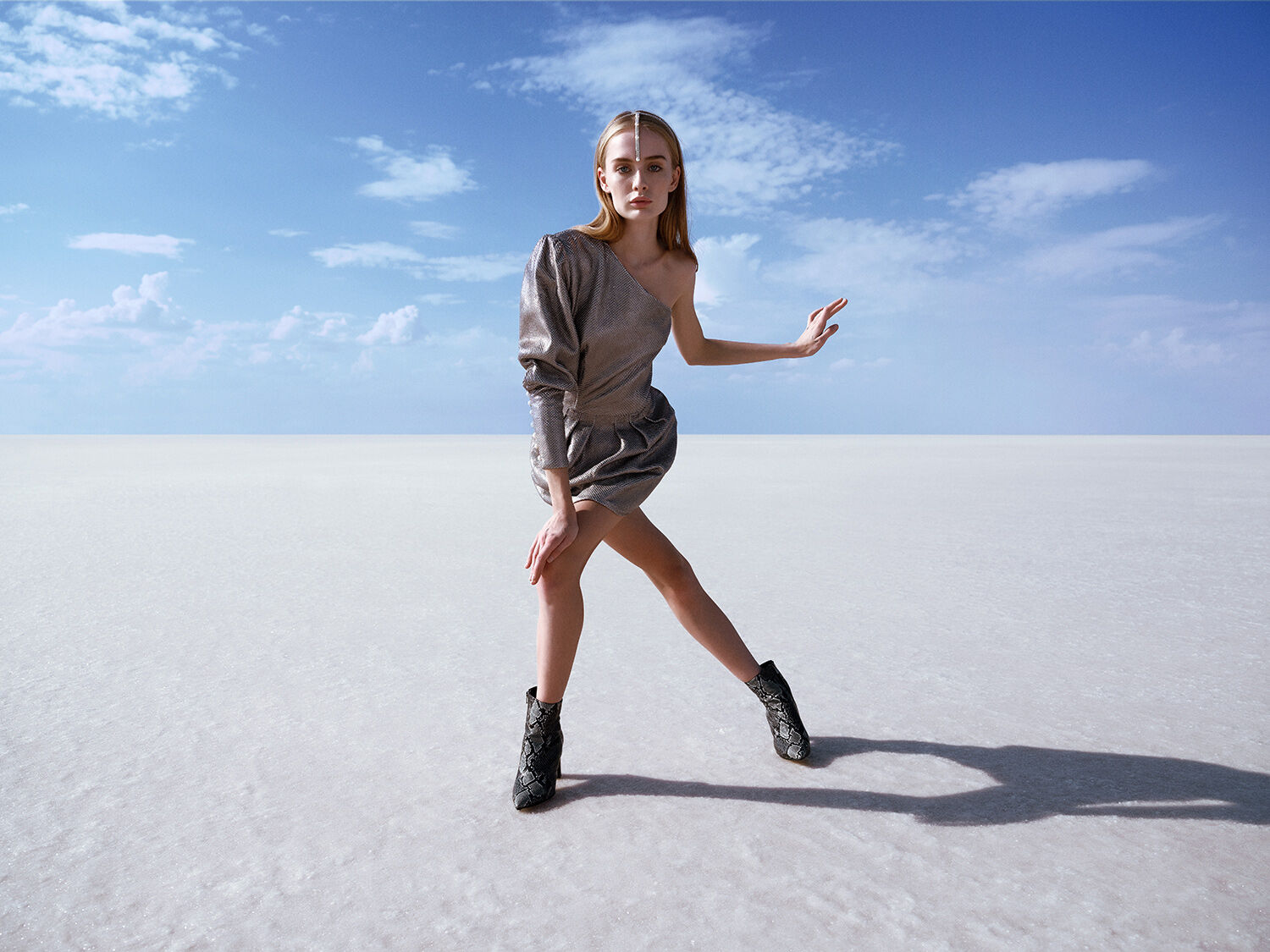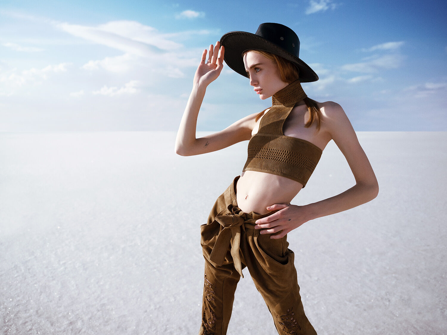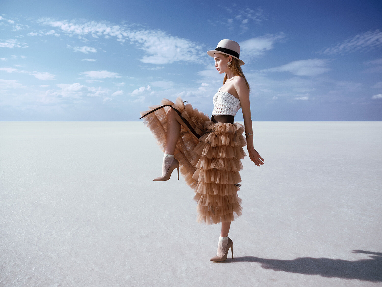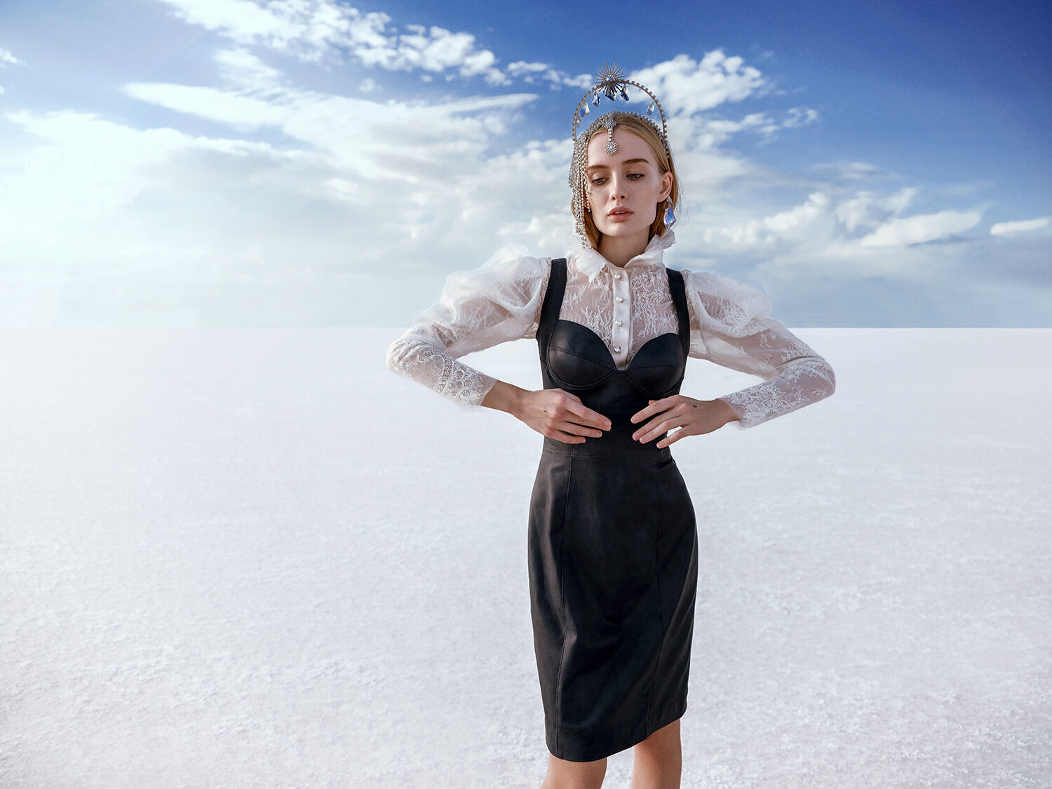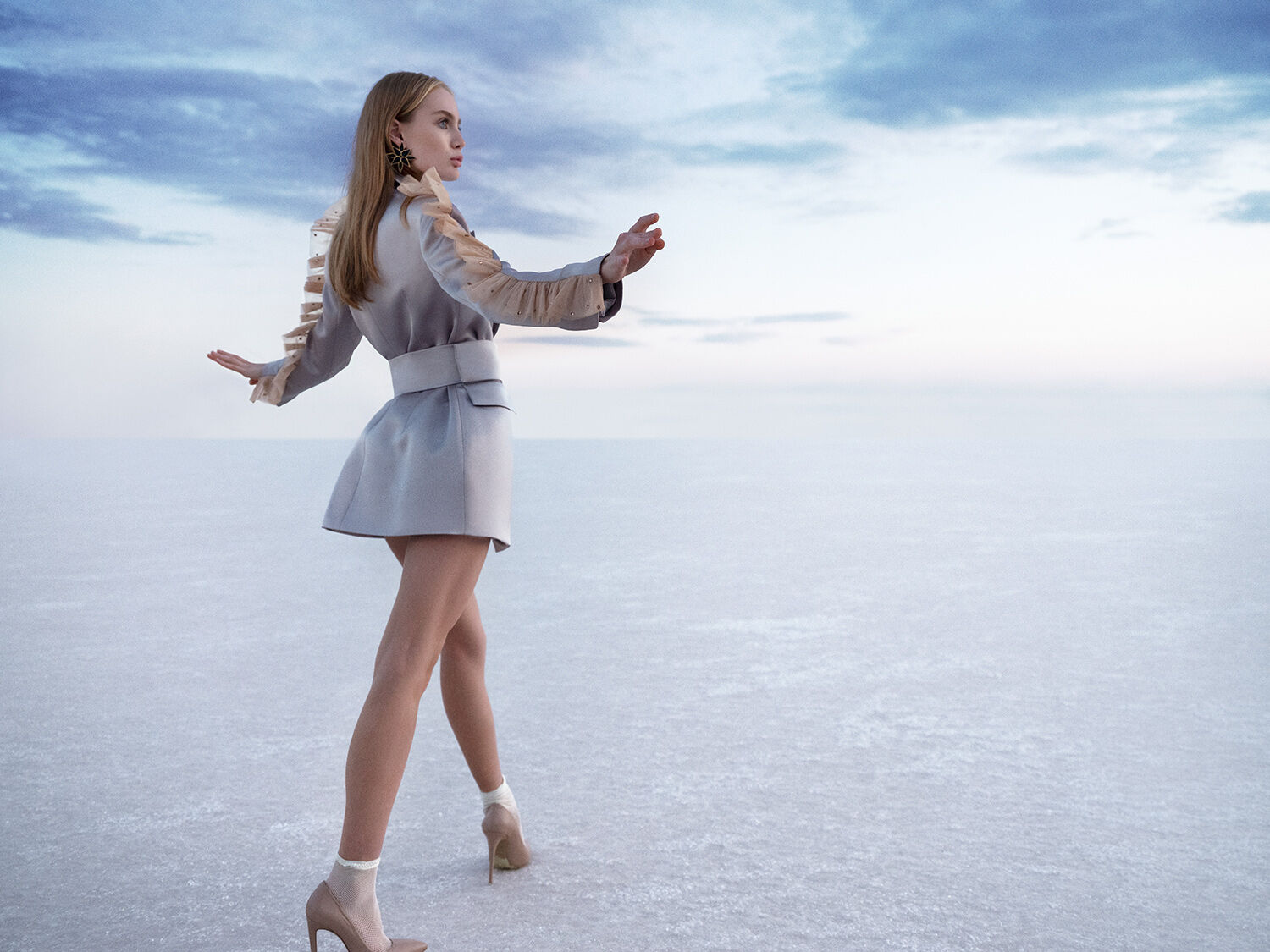We chose a remote salt lake in the middle of nowhere in Turkey as the backdrop. The vast landscape and almost unreal light created a powerful contrast to the collection and turned the location into a natural stage.