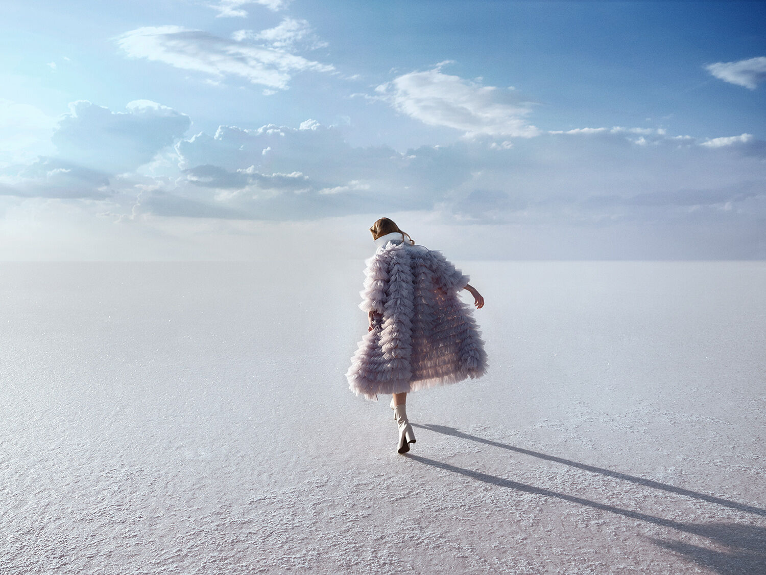 show moreWe chose a remote salt lake in the middle of nowhere in Turkey as the backdrop. The vast landscape and almost unreal light created a powerful contrast to the collection and turned the location into a natural stage.