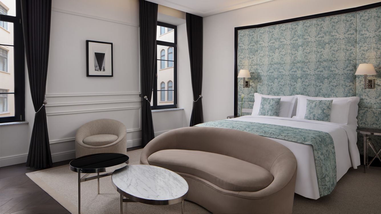 show moreGuest rooms feature handcrafted copper pieces sourced from local artisans in Eminönü and the Spice Bazaar, alongside bespoke Erguvan flower motifs by Alika Aydar. Custom glass light installations and ceramic replicas of diplomas from the former Sanasaryan School in Erzurum add depth and narrative. Every detail reinforces the hotel’s cultural identity.