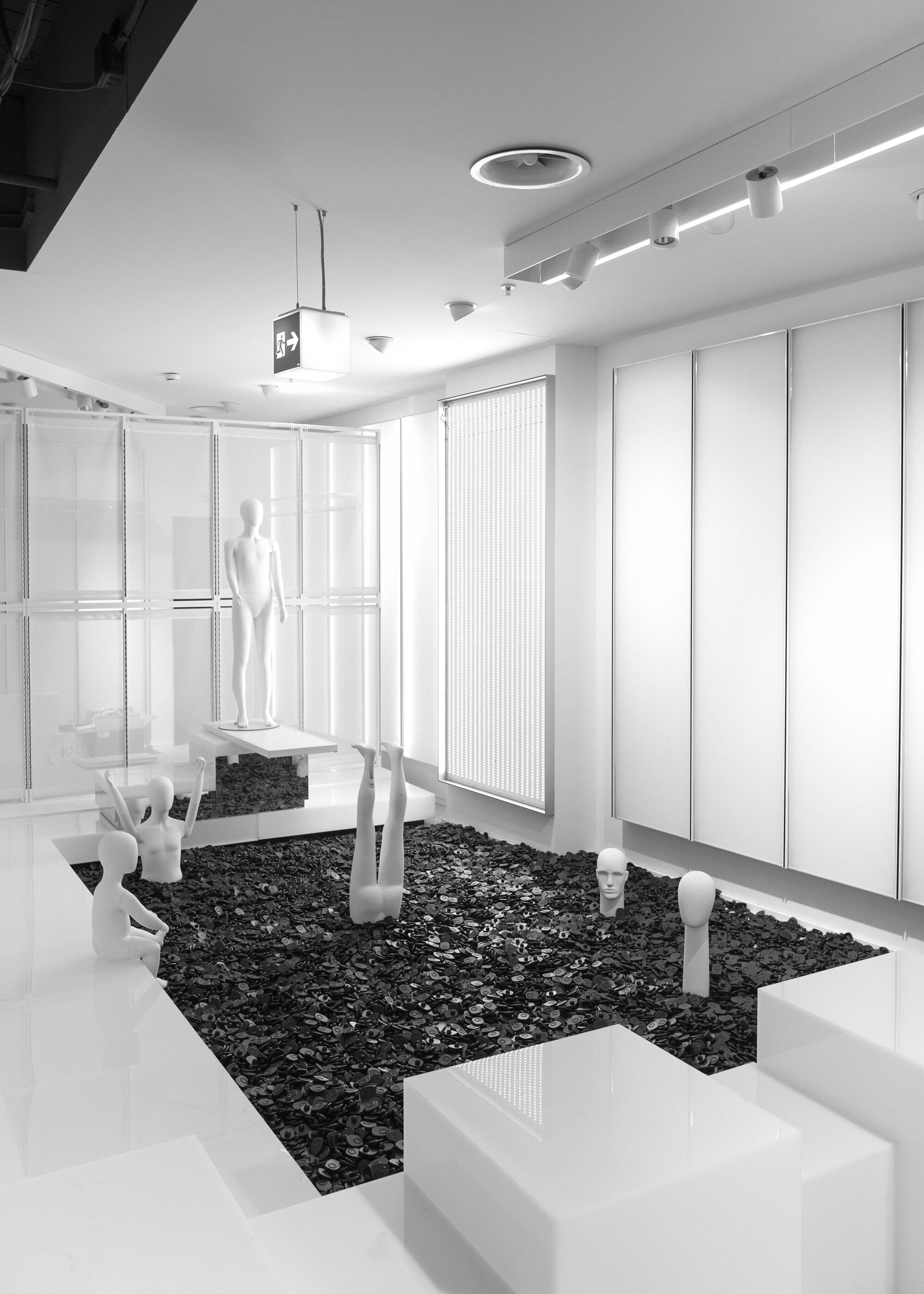 show moreIn collaboration with Atelier Lomann, we created a space that does not hide the existing structure but turns it into an asset. Instead of rebuilding, we reinterpreted what was already there. Abandoned price tags, mannequins and leftover fixtures became integral elements of the interior concept. Not as decoration, but as a narrative device.